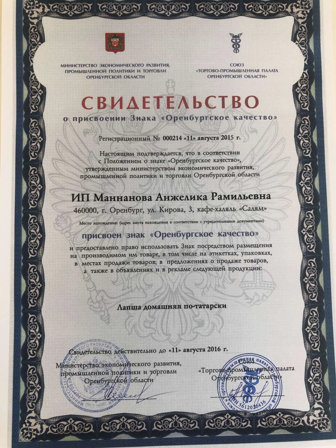 Мы предлагаем продукт, который с каждым годом завоёвывает всё большую любовь и признание среди потребителей Оренбурга и получил знаки отличия, дипломы от муниципальных органов власти и награды на международных выставках.